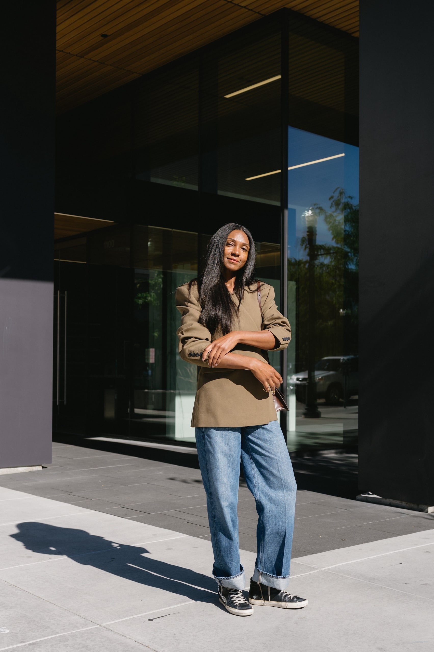 Blazer: Eaves. Jeans: Citizens of Humanity. Shoes: Golden Goose, similar.